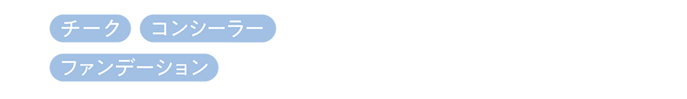 リンゴ酸ジイソステアリル、合成フルオロフロゴパイト、(ジメチコン/ビニルジメチコン)クロスポリマー、酸化チタン、メタクリル酸メチルクロスポリマー、ラウリン酸ヘキシル、ジメチコン、タルク、フェニルトリメチコン、シリカ、ラウロイルリシン、ポリメチルシルセスキオキサン、1,2-ヘキサンジオール、水酸化Al、ジメチコンクロスポリマー、トリ(カプリル酸/カプリン酸)グリセリル、酸化鉄、赤226、トリエトキシカプリリルシラン、グンジョウ、カプリリルグリコール、黄4、メチコン、カプリル酸グリセリル、ティーツリー葉油、アンズ核油、ホホバ種子油