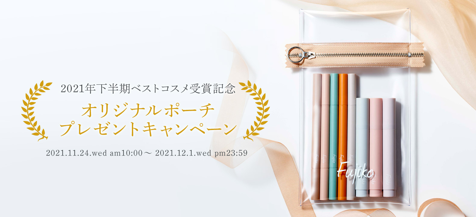 感謝の気持ちを込めて、期間中に本サイトにて商品をご購入いただいたすべてのお客様に【フジコオリジナルポーチ(非売品)】をプレゼントいたします☆